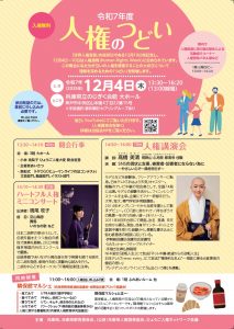 そこで、この「人権週間」の意義を顧み、県民一人ひとりが互いに尊重され、共に生きる「共生社会」の実現に向けた人権意識の普及高揚を図るとともに、本県が市町と共に展開している「人権文化をすすめる県民運動」を推進する事業として「人権のつどい」を開催します。